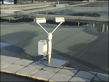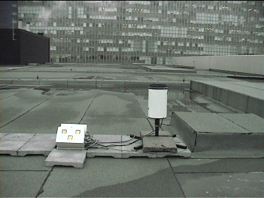 Here is a picture of the rain indicator and the tipping bucket rain gauge at position P3 (on the roof of the Auditorium):