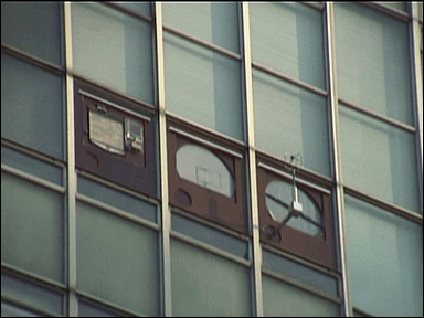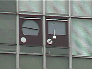 The above picture shows two driving rain gauges mounted in the west facade of the Main Building (10th floor, at position P4 and P5). It shows also the anemometer on the arm for the measurements of the wind velocity near to the facade.