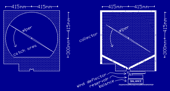 The weight of the reservoir is constantly measured and logged by a computer. The purpose of the wind deflector is to prevent that the wind blows onto the reservoir while the rainwater is let into the reservoir. Details of driving rain gauge TUE-II are shown in fig. 7 and fig. 8.
