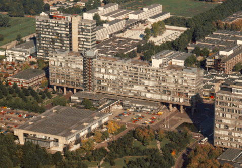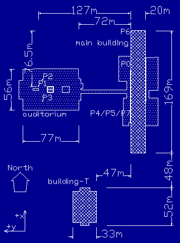 The main building is seen in the middle of fig. 1; the auditorium is seen at the bottom-left side of the picture.